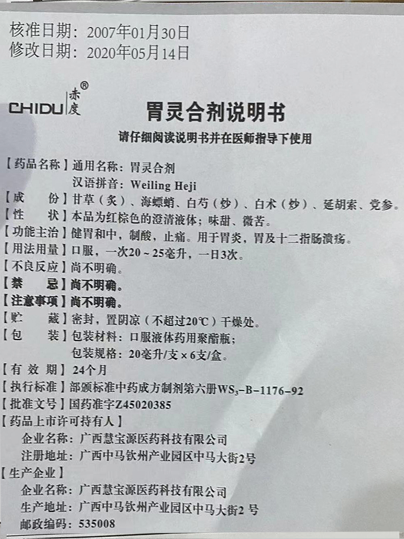 商品名称:胃灵合剂