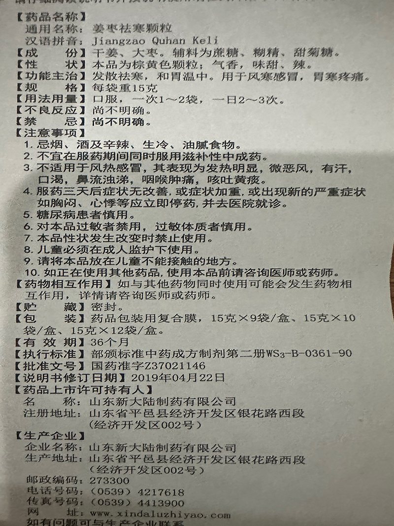 [功能主治] 发散祛寒,和胃温中。用于风寒感冒,胃寒疼痛
