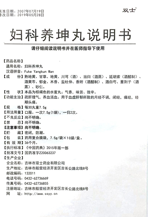 成分:熟地黄、甘草、黄芩、郁金、香附、木香、砂仁、白芍、川芎、当归、延胡索、杜仲、蔓荆子